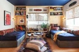 Whitney Leigh Morris’s Pint-Size Bungalow Creative director Whitney Leigh Morris lives in a “tiny canal cottage,” as she calls it, on Venice’s famed canals. The quaint 362-square-foot home has an L-shaped built-in sofa with storage cubbies underneath. We love her off-white color palette with its mix of textures and patterns—it feels airy and bright. Julia Leach’s Art-Filled, Monochrome Space Recently relocated to Los Angeles from New York, designer Julia Leach of stripe-centric apparel and accessories brand Chance, chose a monochrome palette for her Venice living room. We love her expansive gallery wall and the impact of her long and low bookcase. Eileen Peters and Mark Wiesmayr’s Eclectic Surf Shack The Venice Beach home of model and photographer Eileen Peters and creative director Mark Wiesmayr, which was featured on The Selby, is what we’d call a surf shack. Their living room has a laid-back ’70s vibe with a hanging cadiz chandelier, kilim floor pillows, an eclectic bookcase, and a shaggy carpet.