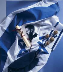 Dans son poème intitulé «les couleurs de Judah», écrit près de trente ans avant le premier Congrès Sioniste, Frankl évoque le bleu et le blanc: Lorsque son cœur se remplit de sublimes sentiments, Il se couvre des couleurs de son peuple Et il prie, enveloppé D’un châle blanc scintillant, Les bords de cette étoffe blanche Sont ornés de larges bandes de couleur bleue, Tel la cape du Grand Prêtre Ornée de bandes de fils bleus, Ce sont les couleurs de notre pays bien-aimé, Bleu et Blanc sont les frontières de Juda, Blanc est le rayonnement du sacerdoce, Et Bleu, la splendeur du firmament. A.L. Frankl, «Les Couleurs de Judah», dans Ahnenbilder (Leipzig, 1864). Le poème de Frankl fut traduit en hébreu et publié dans le magazine HaHavatzelet («la Rose de Sharon») en 1878. On ignore si les dirigeants du mouvement sionisme le connaissaient, mais il est certain que les drapeaux de tous les premiers organismes sionistes évoquaient les bandes bleues du talith.