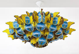 This surprising material and geometric shape makes this lamp both classic and innovative. The double glass cylinder recalls Art Deco forms in a unique contemporary way. The use of ready-made objects gives an appearance with a Duchamp idea. The lamp is inspired by the Polish scientist, Maria Sklodowska-Curie, who was awarded the Nobel Prize in Chemistry. The tubes are detachable and the lamp provides the opportunity for visual experiment by creating a variety of configurations and arrangements. Diameter: 47cmx47cm (18.5 x 18,5 inches) ,High: 110 cm (43.3 inches) from celing to the bottom edge. Bulb is not included. (E27 type, max to 100 Watt)download: EEL label Maria.pdf Made out of 29 chiquita banana boxes and 300 paper fastners1 lightsoureDimensions: diameter 110 cm, 50 cm highLaunched open source in 2008: digital & paper instruction manual.For a digital manual send me a request by mail. Photo credits: Norbert WaalboerExplore Colors Every, The Colors, and more!Columbus Day DealsShop nowColumbus Day Deals