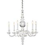 From the Visual Comfort blog, room designed by Morgan Harrison the "George II" chandelier by Visual Comfort. traditional in shape, but a little non-traditional in that it doesn't have hanging crystals and swags. Visual Comfort apparently makes a version for William Sonoma Home. It's slightly different...and more expensive. The small George II retails for around $1500 (the large is around $2200). The Williams-Sonoma version is about $2000. I was a little crushed by the prices, so I looked for an alternative and found Crystorama's Harper chandelier. It retails for about $800. I put the George II and the Harper side-by-side, I can't help but fixate on how much more elegant the George II is. prettier, the curve of the arms is a little more gentle, the candle "cups" aren't as dramatic, and the bottom is more ornate. that the candles are white, though I could obviously switch the silver ones out on the Harper. I even like the ceiling hardware on the George